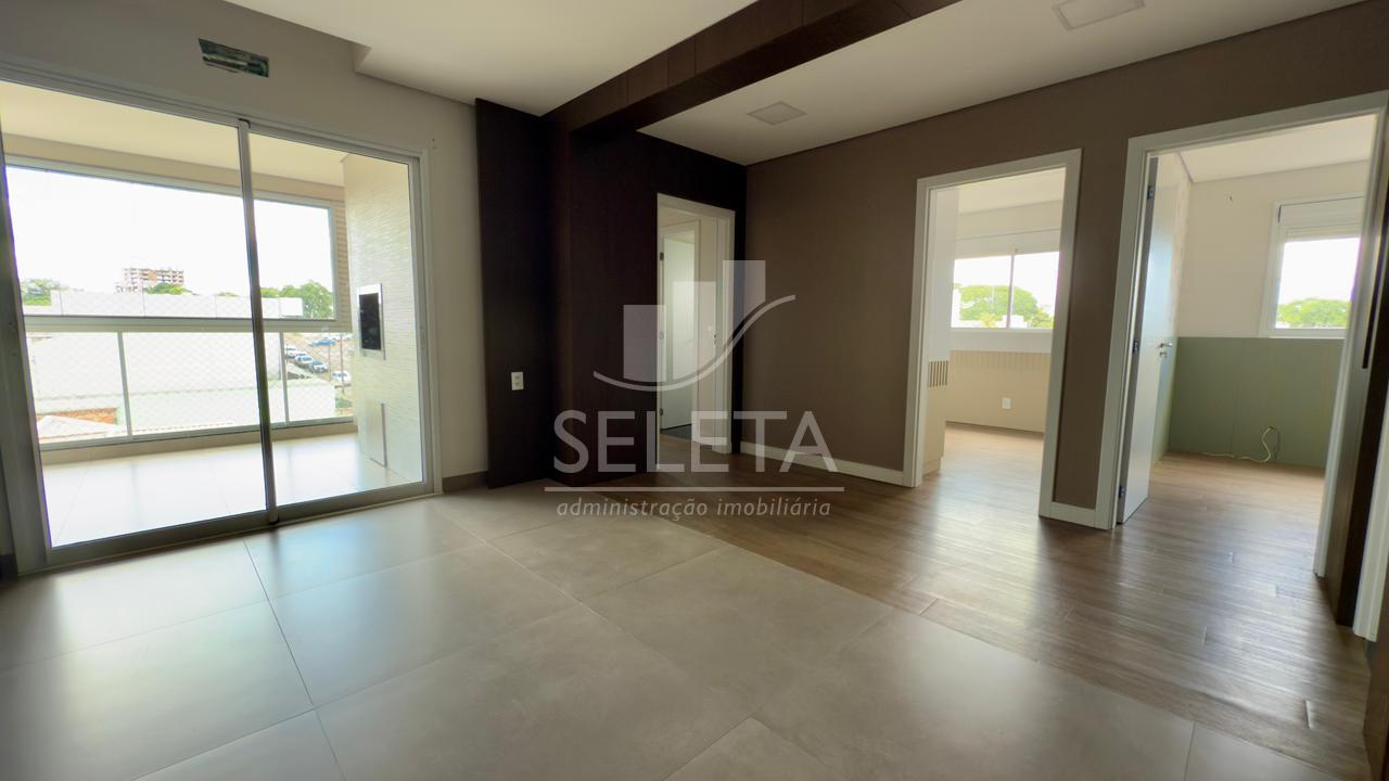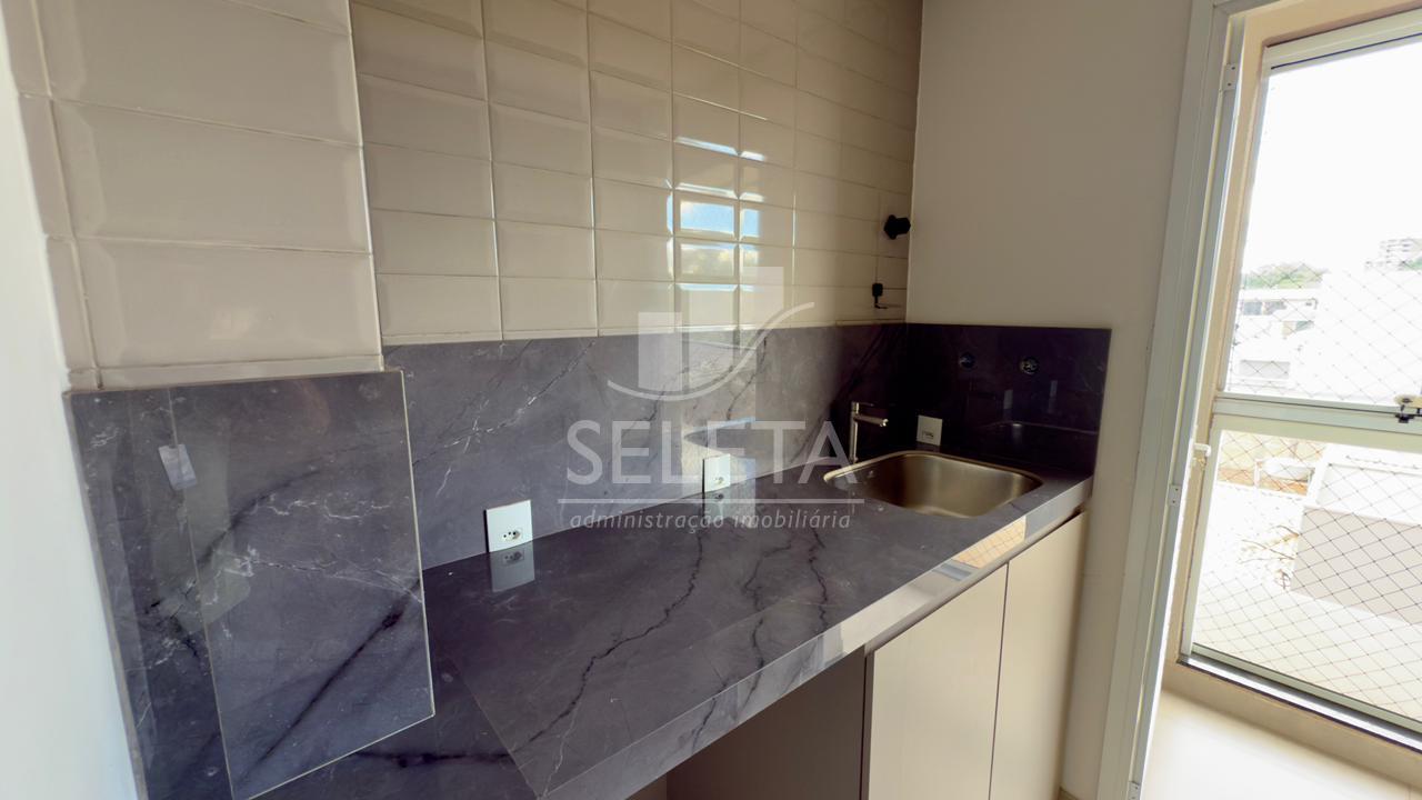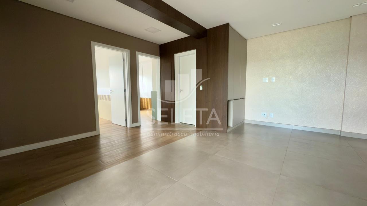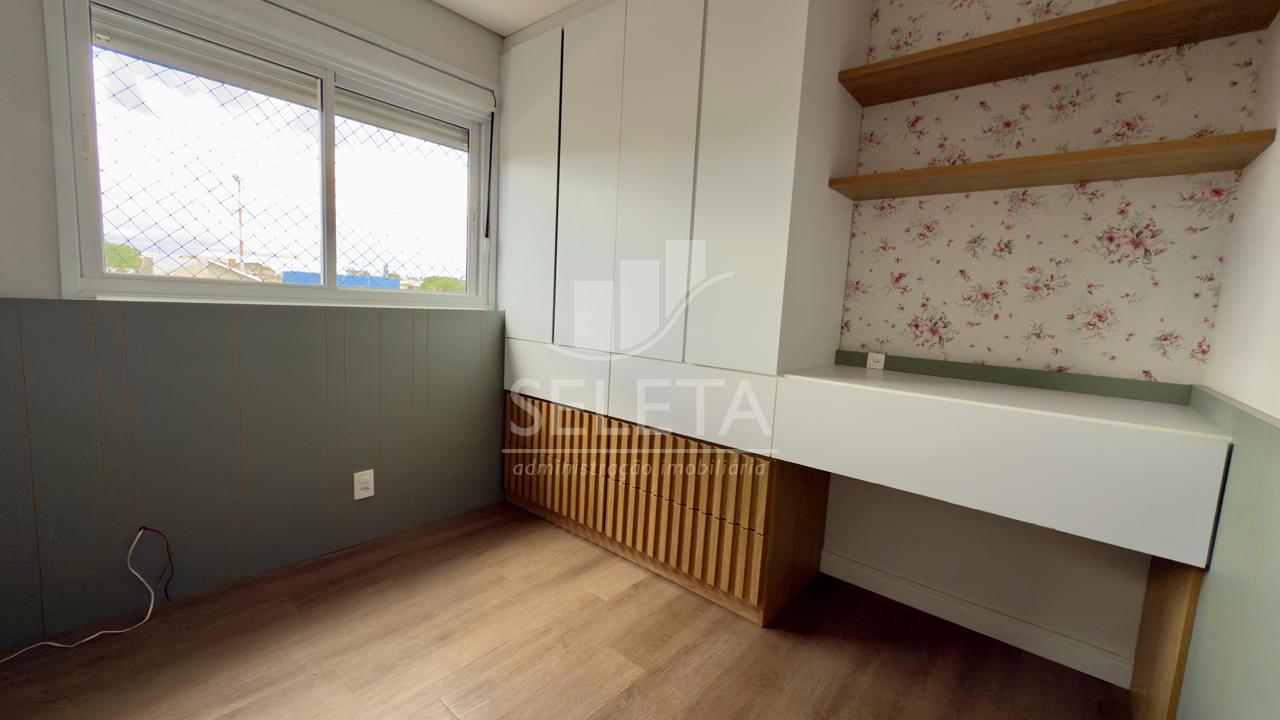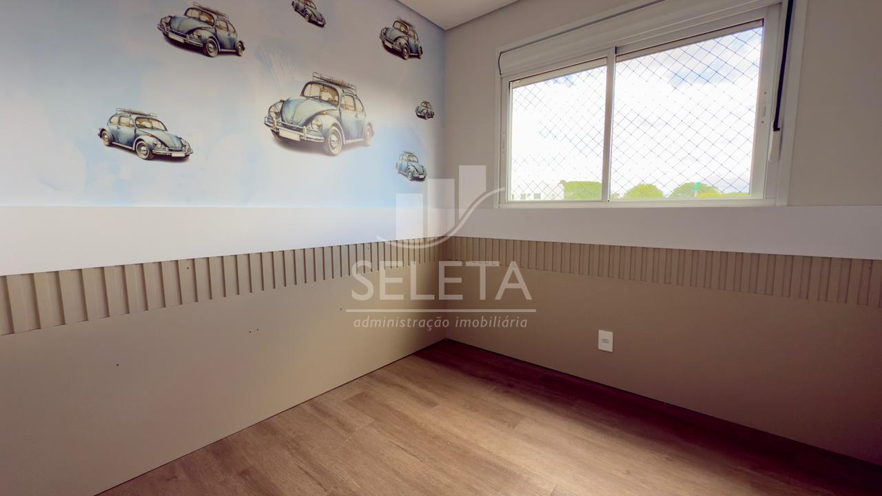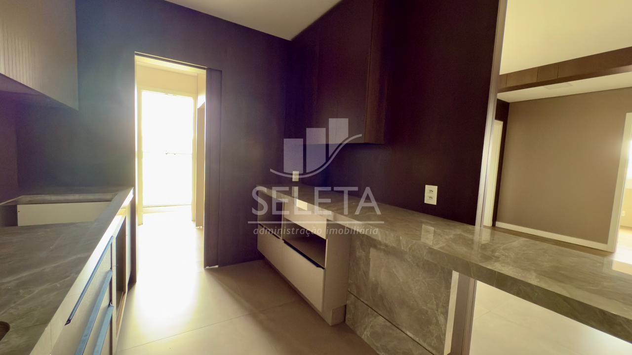 O Apartamento possui 166m² de área total e 102m² de área privativa. É dividido em uma suíte, dois quartos, sala de estar e jantar, cozinha planejada, lavanderia e sacada com churrasqueira. Possui também 2 vagas de garagem. O imóvel encontrasse semimobiliado, contendo móveis nos dormitórios, nos banheiros, cozinha e lavanderia.