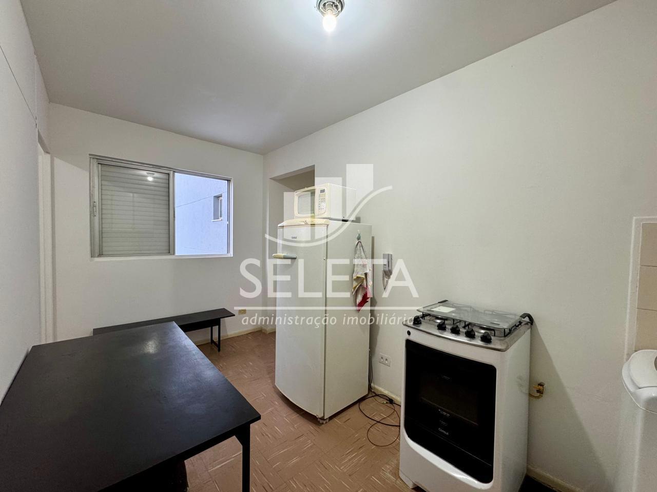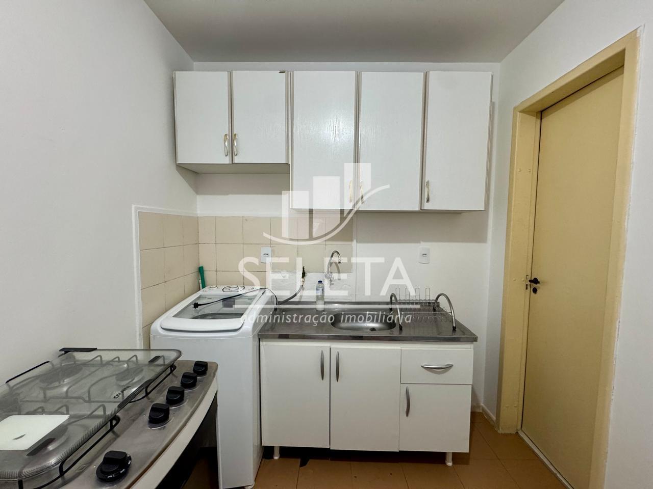 O imóvel possui 30m² de área privativa e é dividido em um quarto, sala de estar e jantar conjugada, cozinha e um banheiro social.