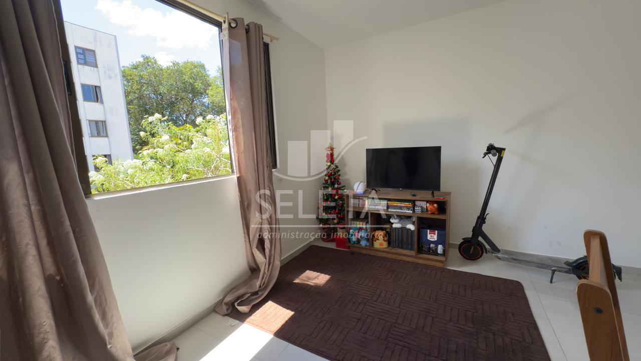 O imóvel possui 52,77m² de área total e 47,40m² de área privativa. É dividido em dois quartos, sala de estar e jantar, cozinha, lavanderia, um banheiro social e uma vaga de garagem. Fica no segundo andar com apenas um lance de escada.