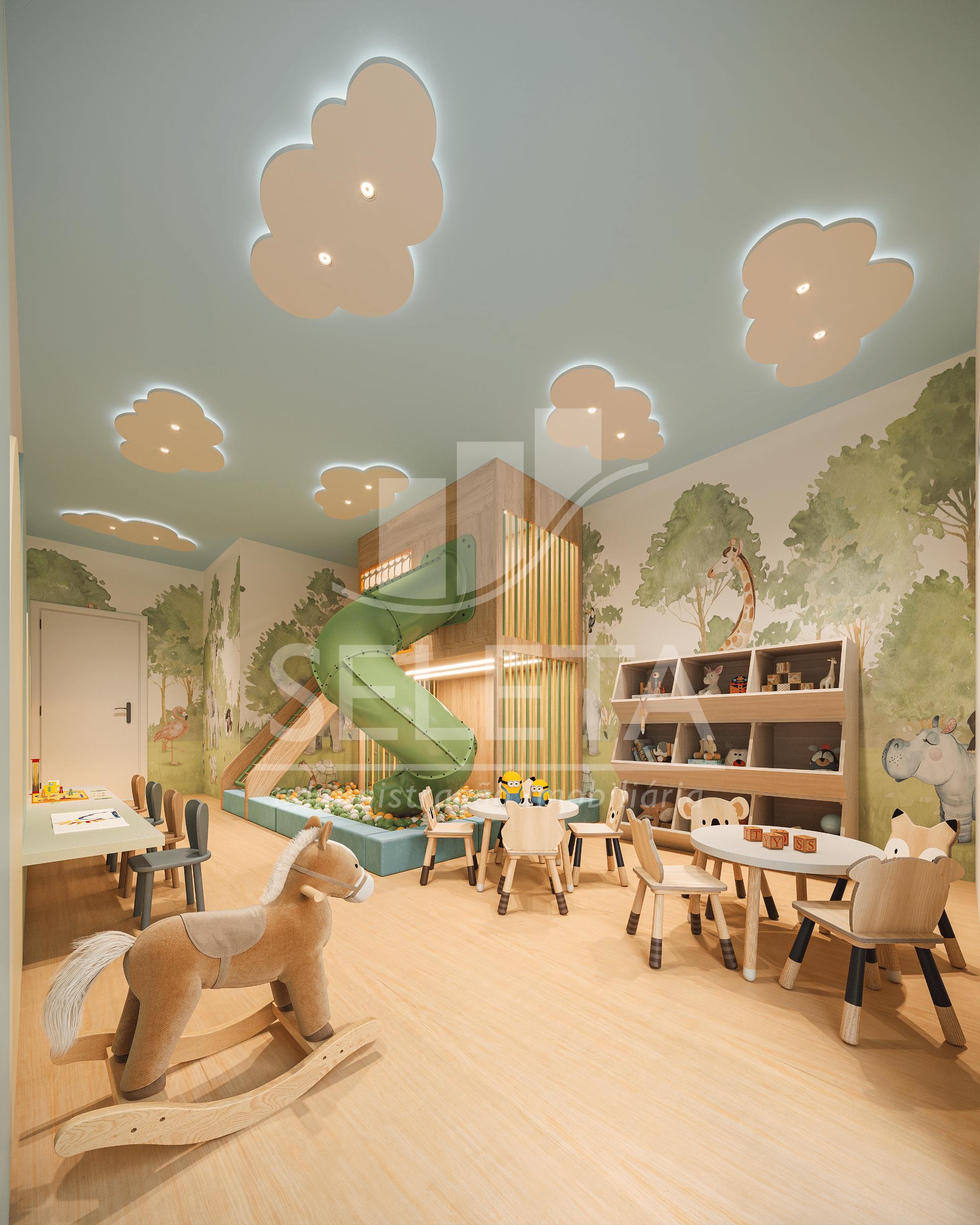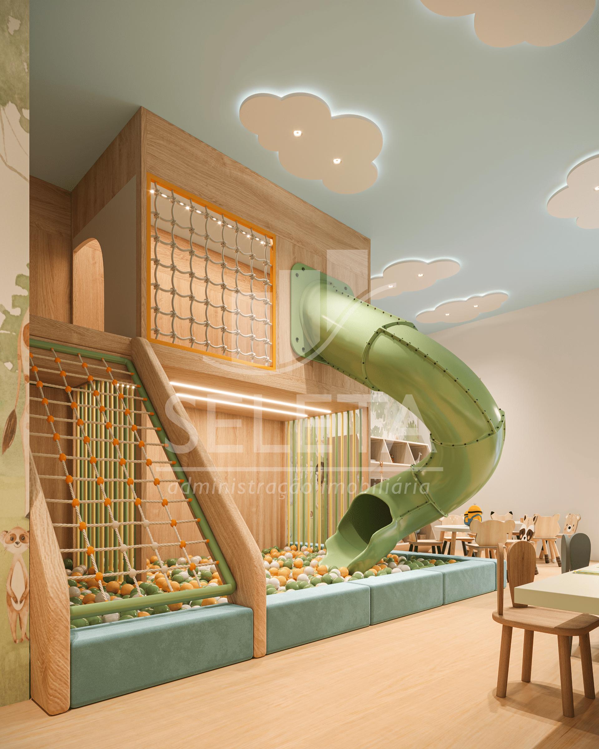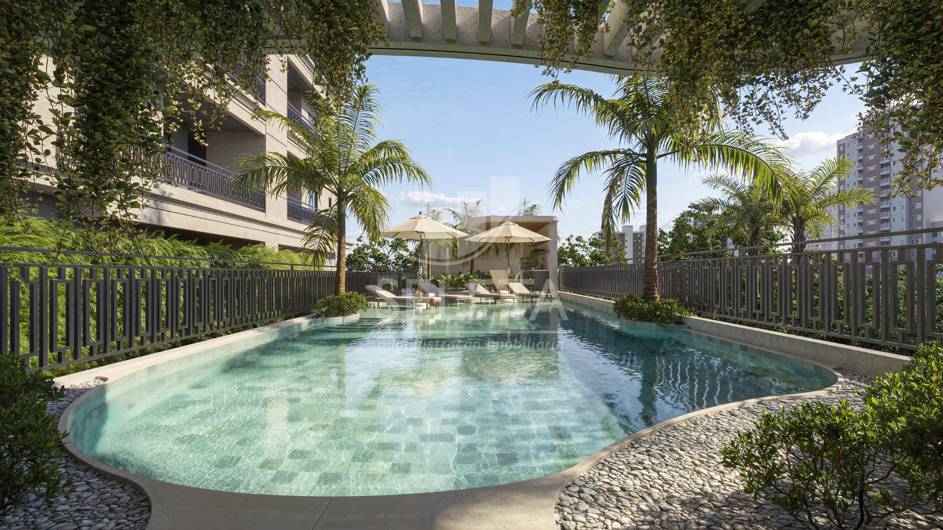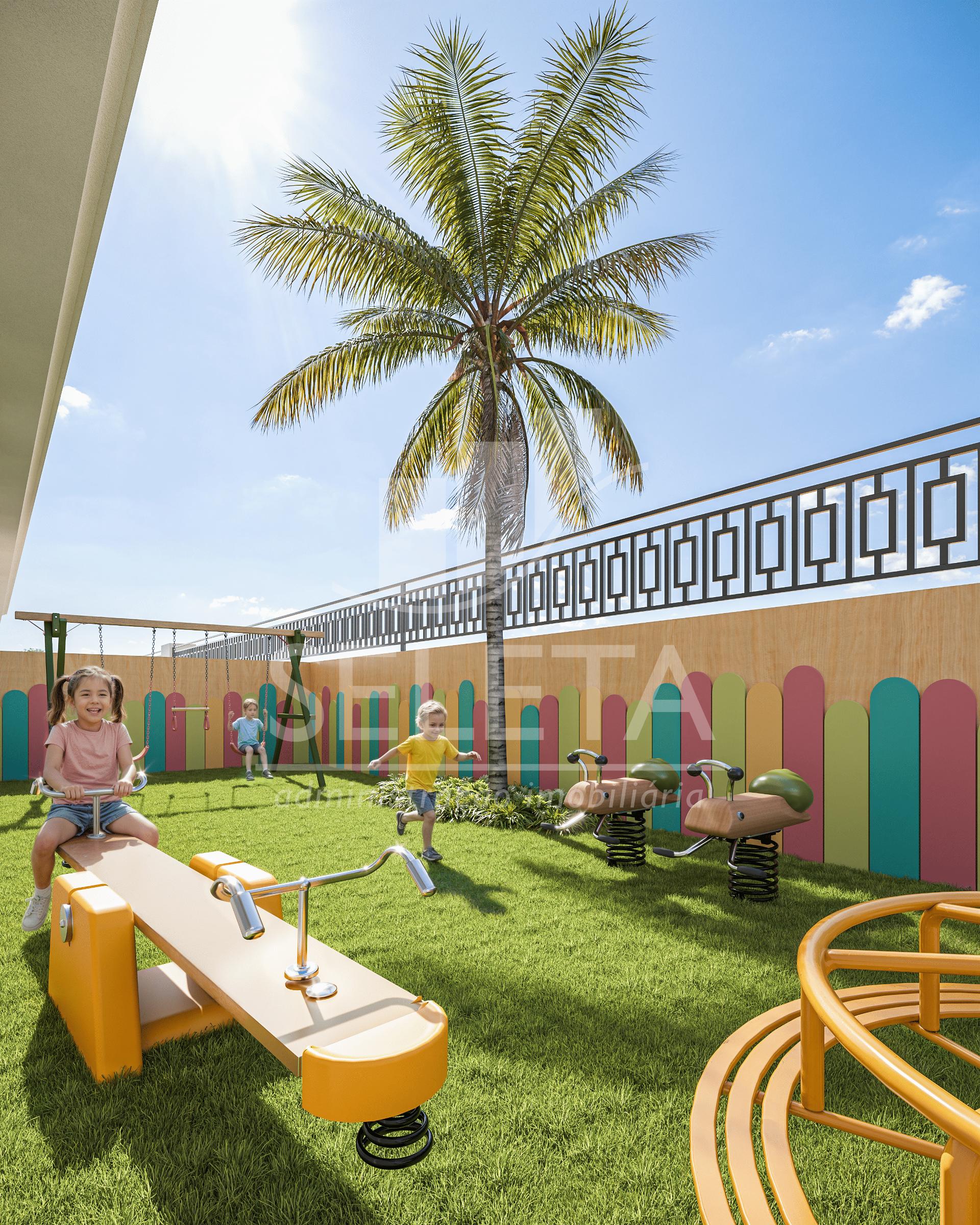 O condomínio oferece pavimento de lazer completo, com piscina, academia equipada, espaço gourmet, áreas verdes, playground e ambientes planejados para toda a família.