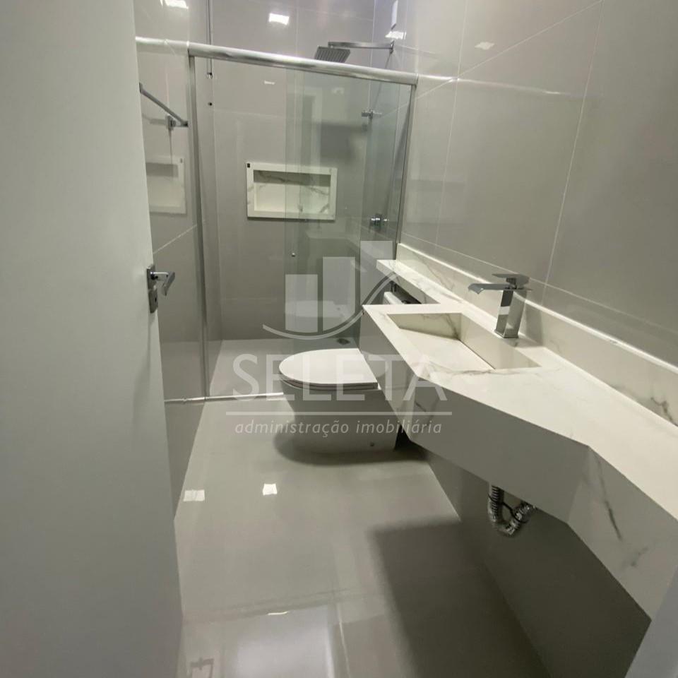 Box, pia e nicho porcelanato nos banheiros