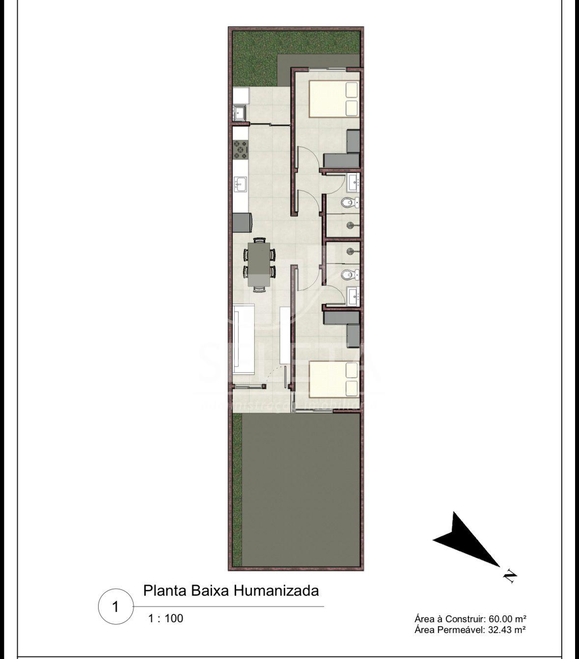 60,00m² (m²) Área Construída