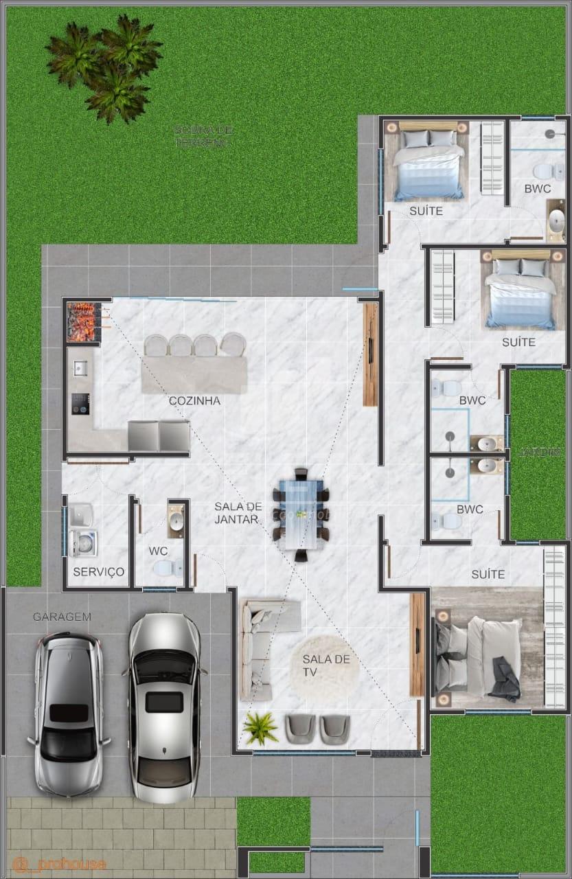 O projeto conta com 1 suíte ampla, 2 quartos, 2 vagas de garagem e ambientes integrados, criando uma atmosfera de conforto e bem-estar. A área social é pensada para quem valoriza amplitude, iluminação natural e harmonia entre sala, cozinha e espaço gourmet.