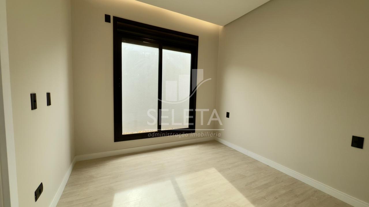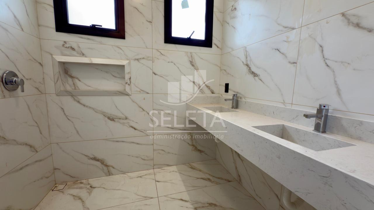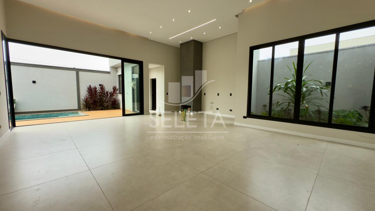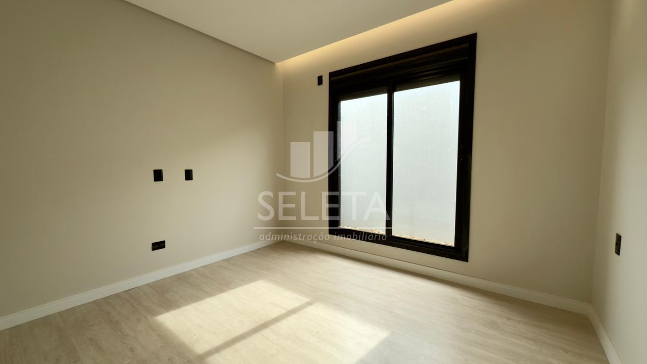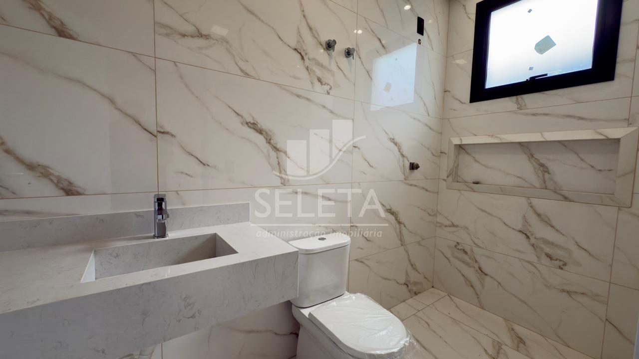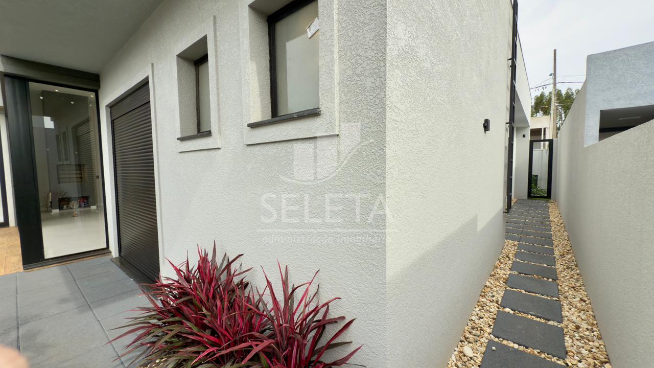 A casa consta com 3 suítes (uma máster com closet e todas possuem persiana elétrica), sala de estar, jantar e cozinha em um mesmo ambiente, piscina, edícula com churrasqueira, lavanderia, lavabo e 4 vagas de garagens.
