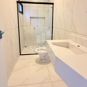 Acabamento com piso acetinado (polido), área técnica para ar condicionado em todos os dormitórios, dreno na suíte e sala.
