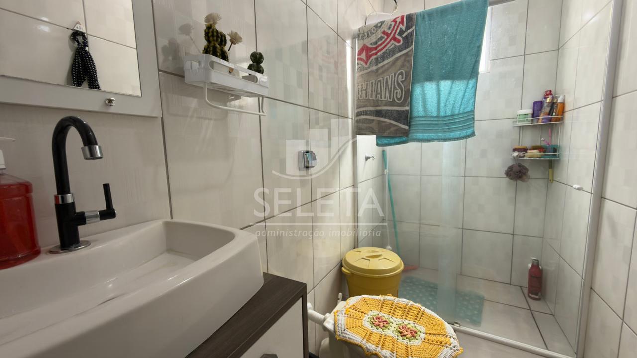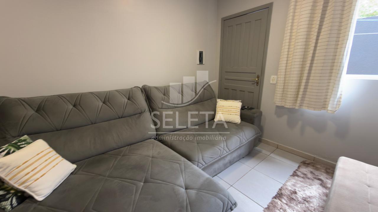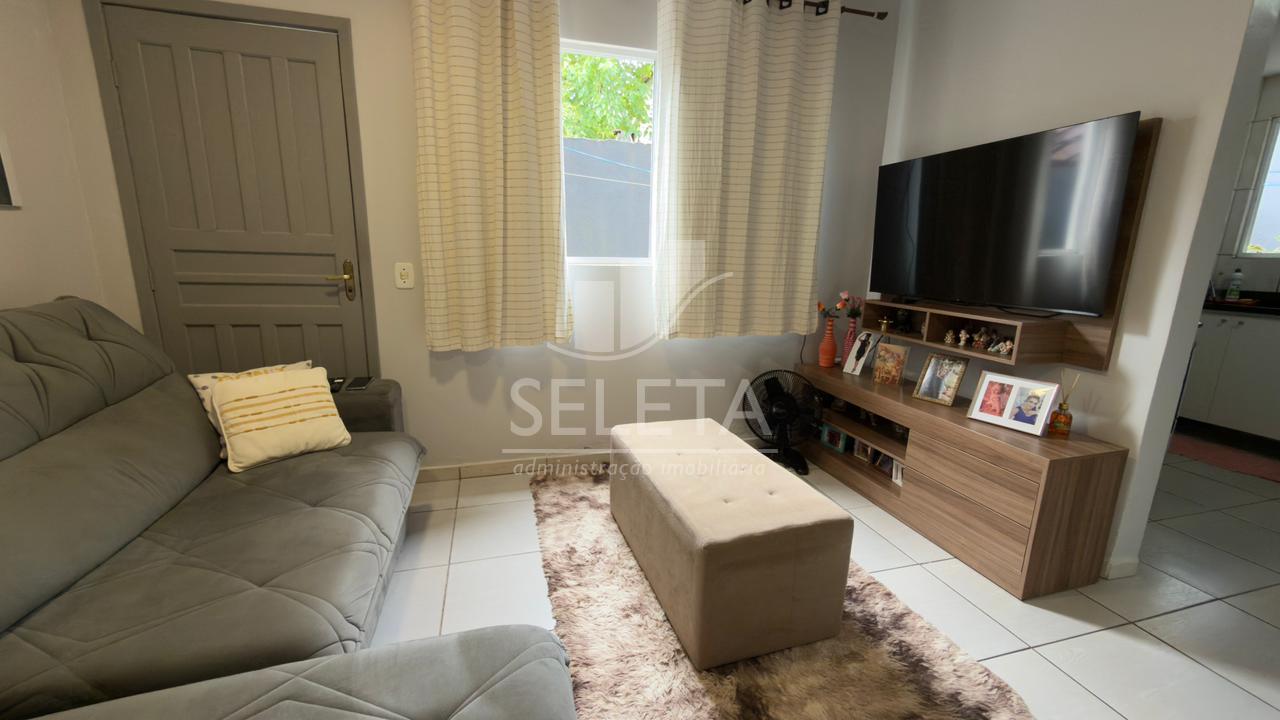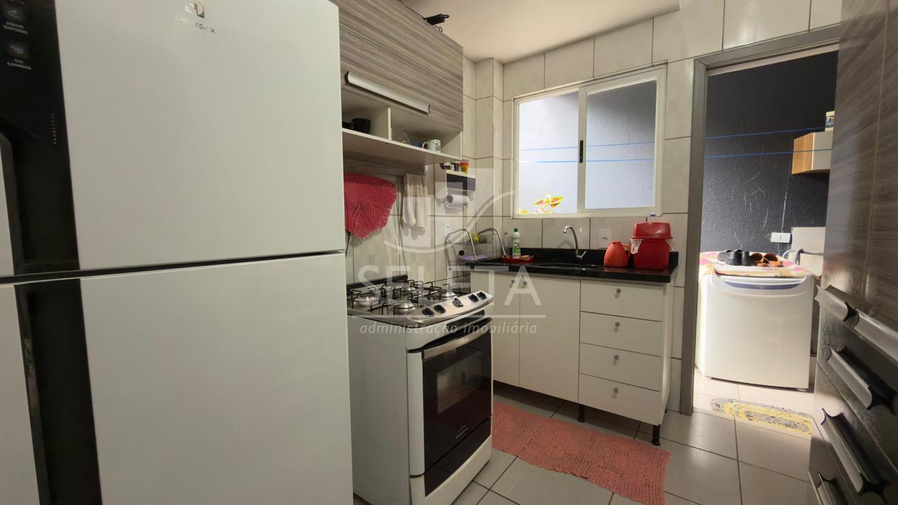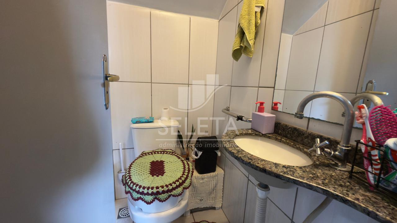 O imóvel possui 90m² de área total e 75m² de área privativa. É dividido em 2 quartos, sala de estar e jantar, cozinha, lavanderia externa, lavabo e uma vaga de garagem coberta. Possui também uma churrasqueira.